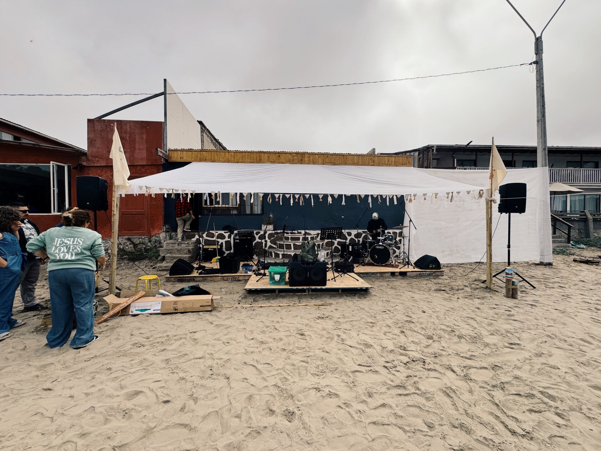 Later, during the concert, some people came closer to listen. I played the drums with the band along with Cesar, the pastor who plays guitar and sings, as well as his wife, and Jose, a dear friend from this church. At the end, Cesar asked me to share the message of the Gospel and make a calling for the people.